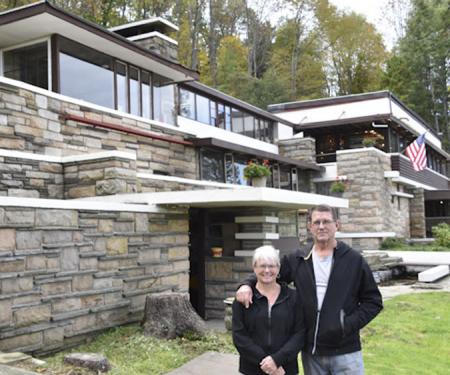 Now, more than 7,000 hours of labor later, Lynn Hall can once again be seen as she was when the first guests stepped inside, as the obstructive trees have been removed and the exterior is cleaned and restored. Thanks to the dedicated work of the DeVores, Walter Hall’s masterpiece, considered the original Fallingwater, will once again welcome guests to share in its remarkable history.